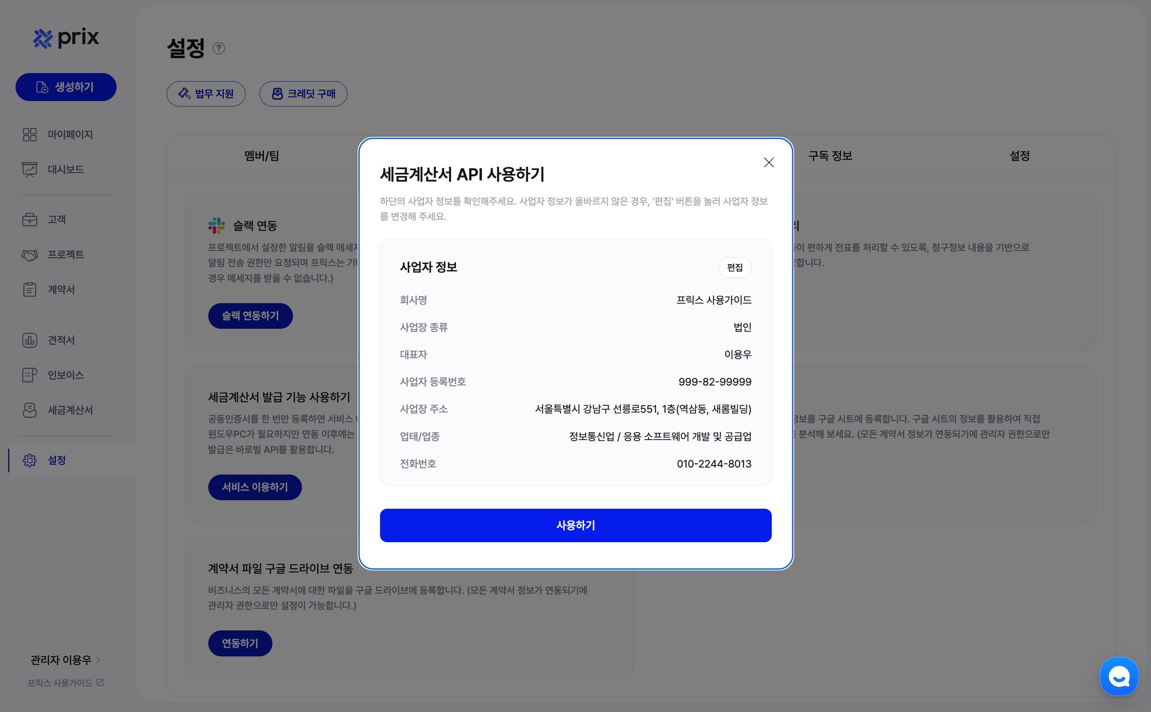 With the tax invoice integration service, you can easily issue tax invoices on Prix.