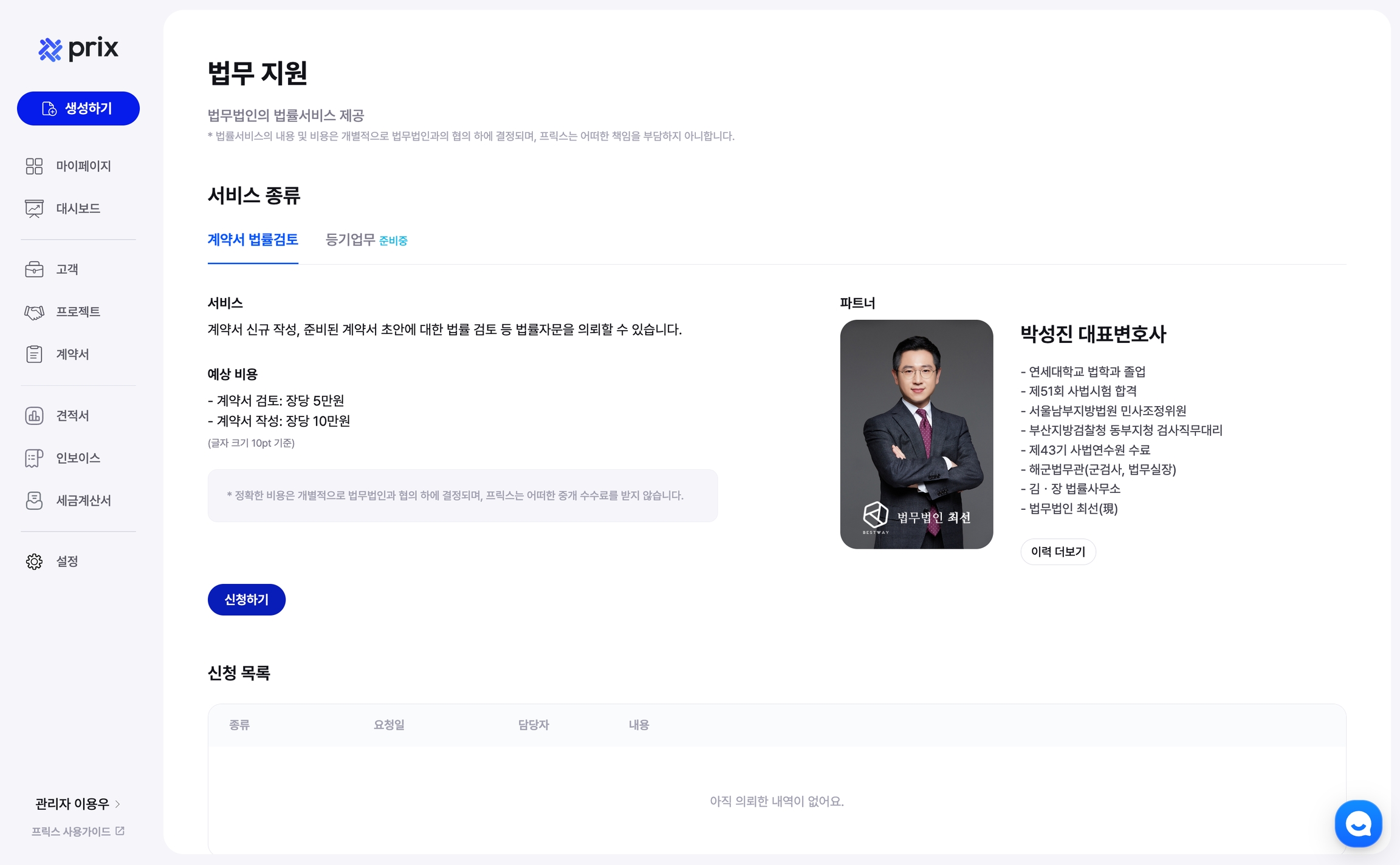 (The contents and cost of legal services are determined in consultation with the law firm. Prix does not assume any responsibility.)