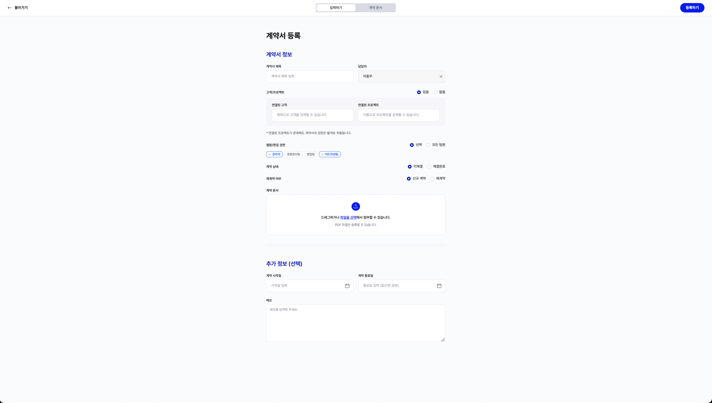 In addition, you can enter account manager, associated customer/project, view/edit permissions, contract status, renewal status, contract duration, notes, and more