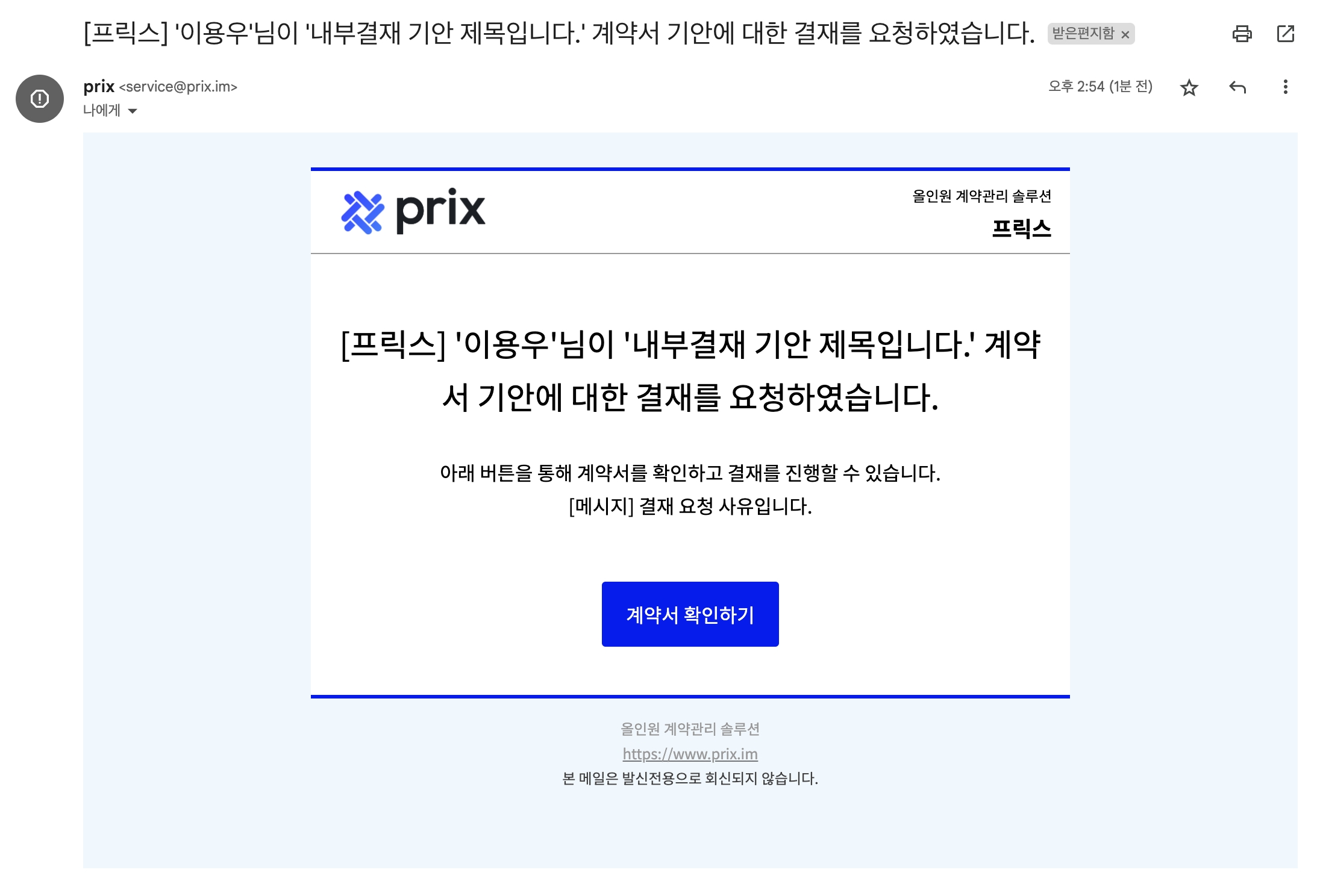 Once an internal review is initiated, an email is sent to the next approver, who can click the 'View contract' button in the email to proceed with the internal review.