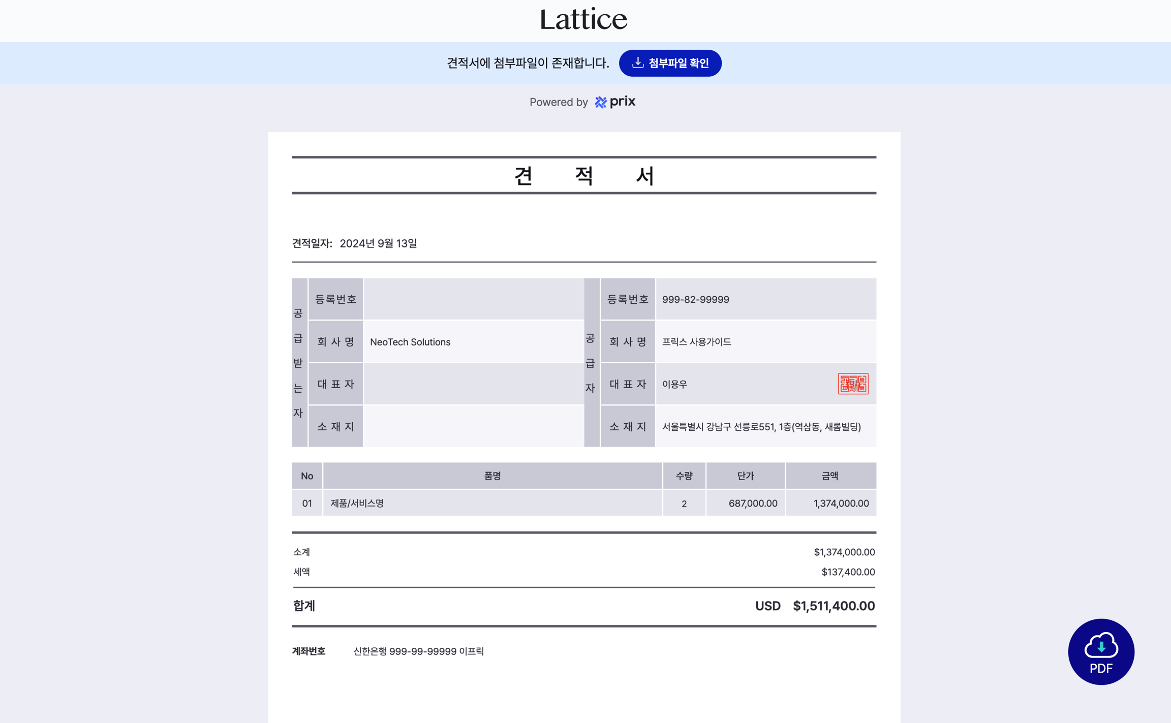 You can share and utilize sales documents created in Prix.