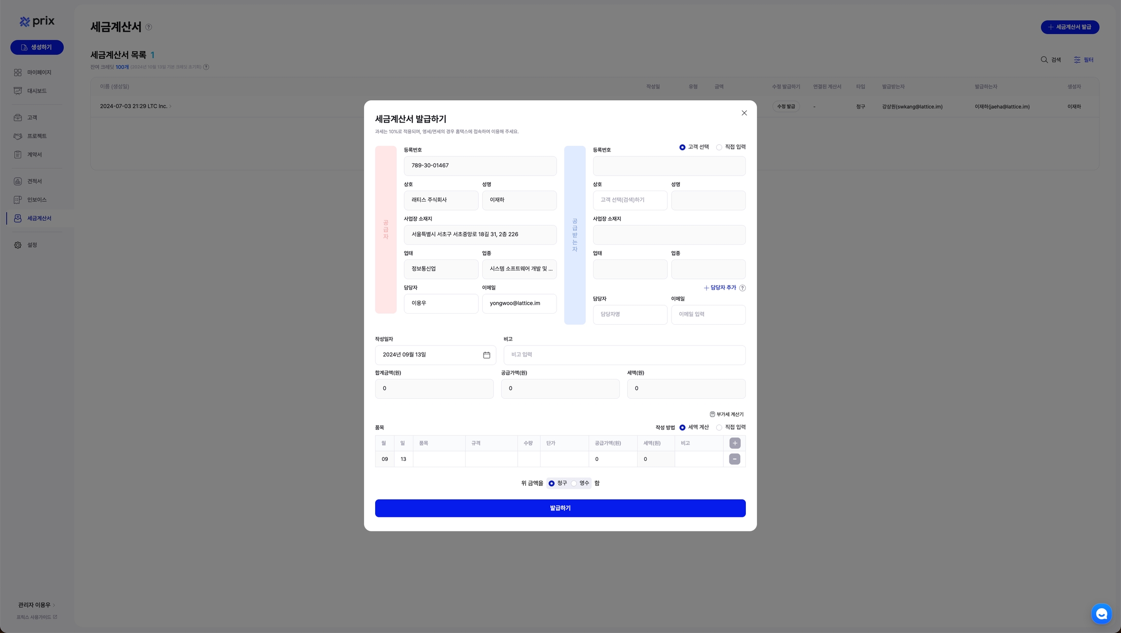 If a tax invoice was issued through Prix, it will automatically be sent to the National Tax Service on the next business day. (You can also send it immediately by clicking on 'Send to NTS' in the linked page.)